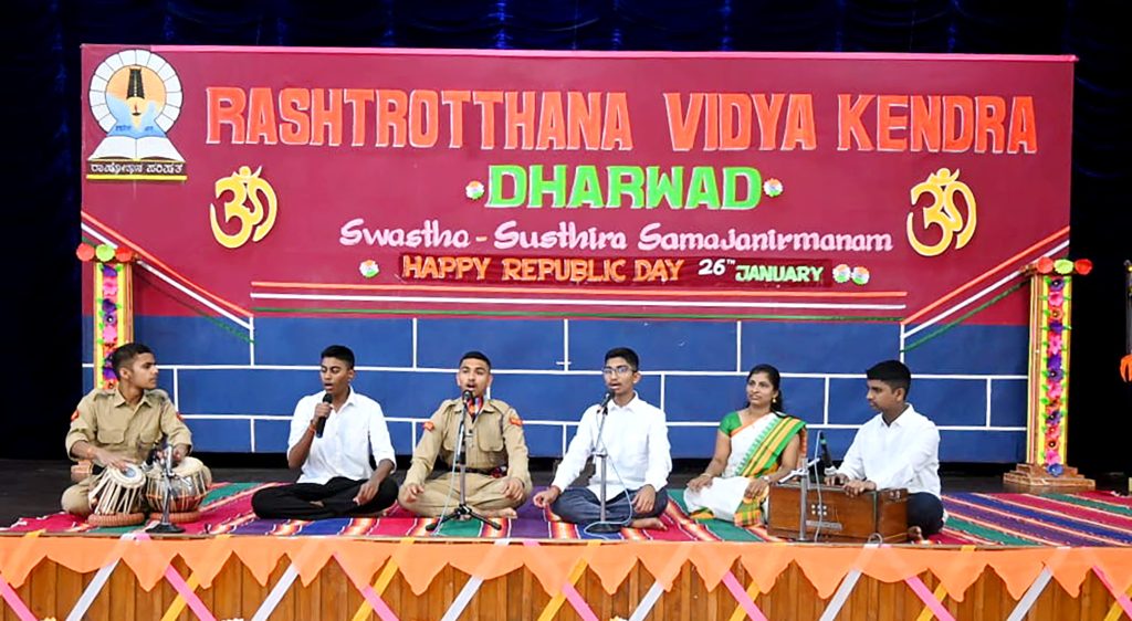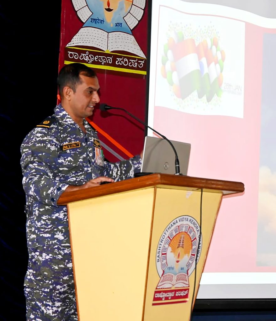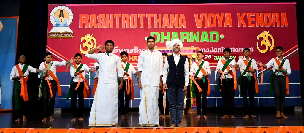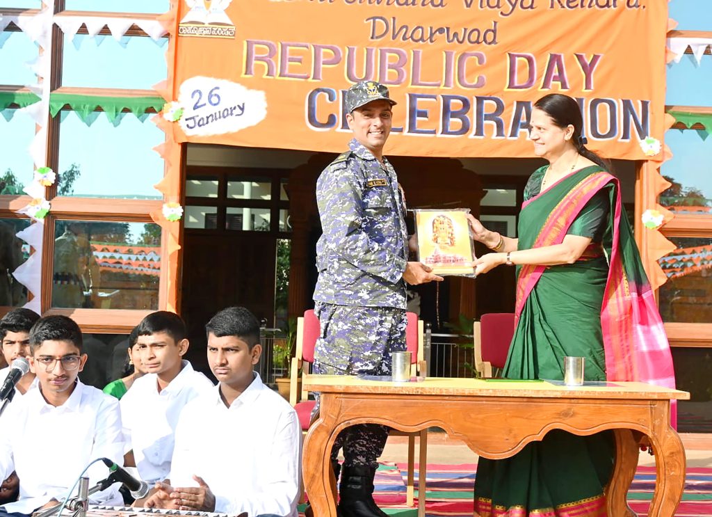 Dharwad, Jan. 26: “The success of democracy is in the hands of the common people. Therefore, the youth and students of the country should understand their responsibility and act accordingly. Today’s children are the citizens of tomorrow, so the heavy responsibility of building a strong nation lies with today’s children,” said retired army officer Sri Deepak S. Kateera. He spoke about India’s progress towards development after the Kargil victory. He spoke as the inaugurator of the Republic Day program herein Rashtrotthana Vidya Kendra – Dharwad, Neeralkatti. The program included parade by the NCC team, dumbbell display, yoga dance, patriotic song singing, mass dance and other patriotic performances.