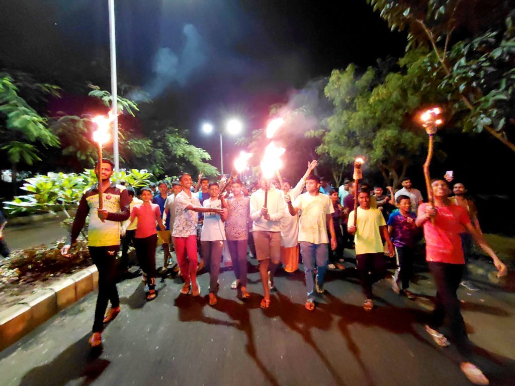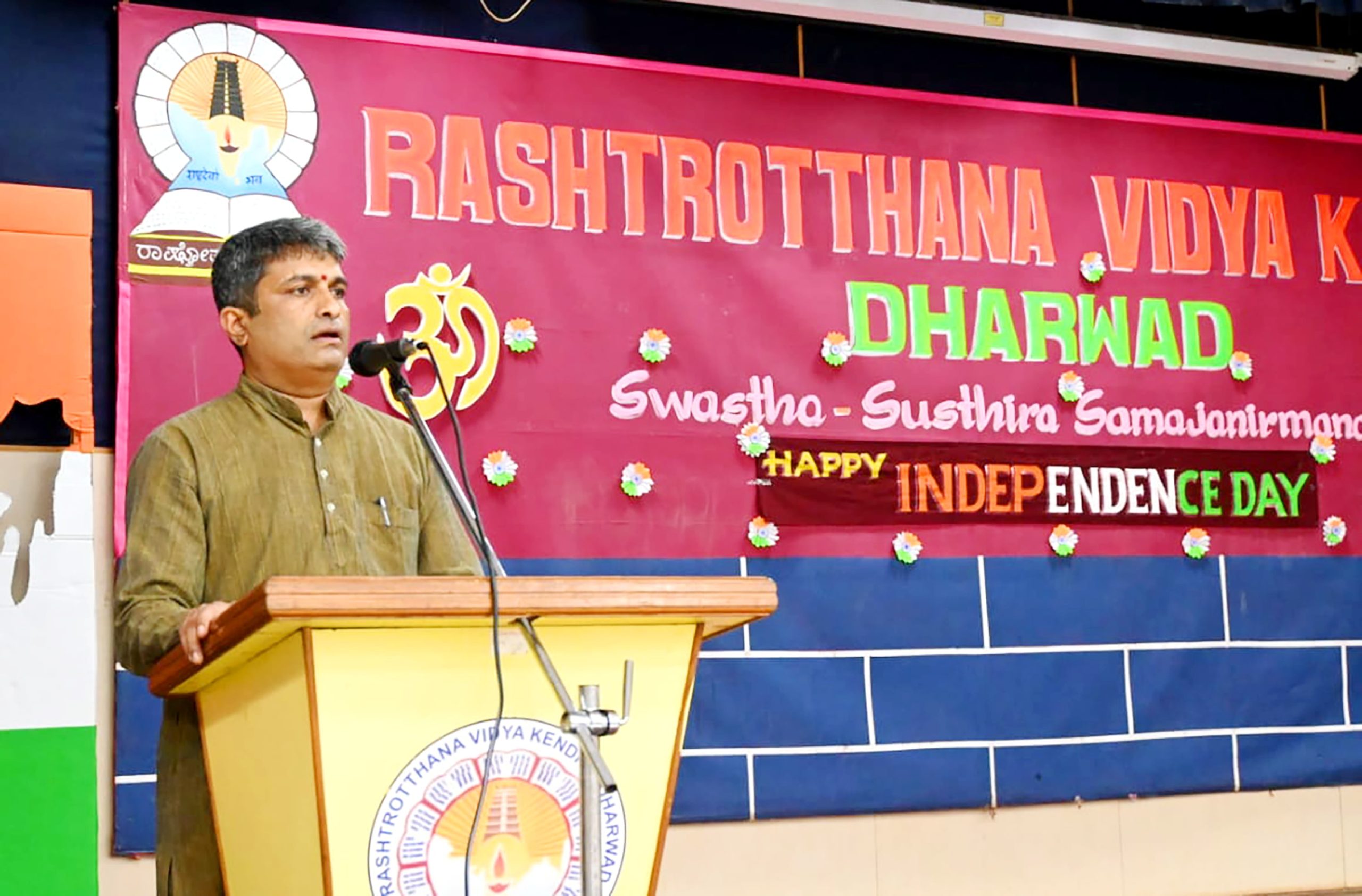 Dharwad, Aug. 14: “The partition of the country is the great national tragedy that occurred at the midnight of August 14, 1947, when India was celebrating its independence. This is not only an event that divided India. It is a great betrayal of the thousands of martyred patriots who sacrificed their lives for freedom. We all need to join hands in the effort to reunite the divided India,” said Sri Gururaj Agadi, Correspondent of Rashtrotthana Vidya Kendra, Sattur. He spoke as the spokesperson of the Akhand Bharat Sankalpa Day program held herein Rashtrotthana Vidya Kendra – Dharwad, Neeralkatti on the midnight of August 14. On this occasion, a midnight torch-light procession was taken out by the students of the school. Sri Vinayak Bhat, a senior teacher of the school, preached the Sankalpa. Sangeeta Bhat sang a personal song.