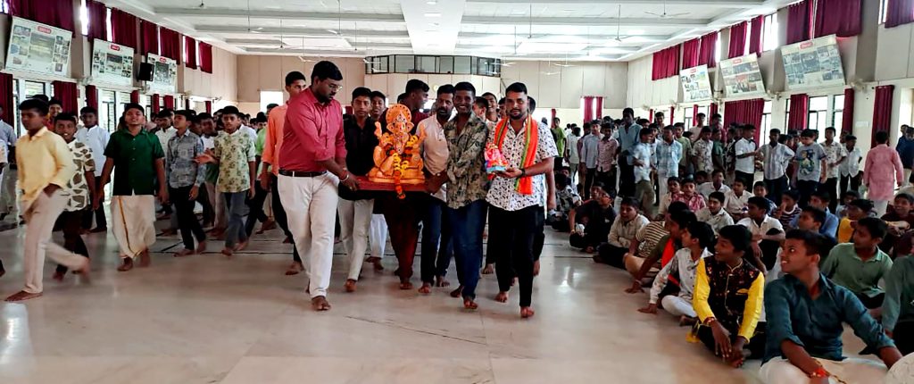 Dharwad, Aug. 27: Ganeshotsava was celebrated on the occasion of Ganesh Chaturthi herein Rashtrotthana Vidya Kendra – Dharwad, Neeralkatti. Sri Harsha Bhat performed the puja.
