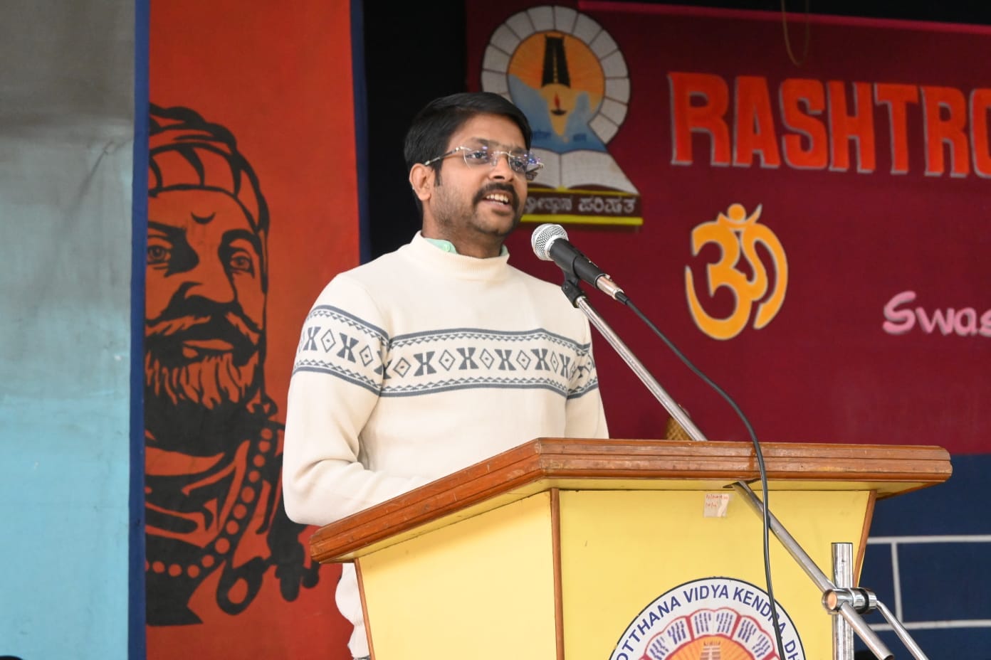 Dharwad, Dec. 24: National Mathematics Day was celebrated herein Rashtrotthana Vidya Kendra – Dharwad, Neeralkatti.Sri Anand Barangi, Assistant Professor, IIIT, Dharwad, who arrived as a spokesperson for the program, said, “The contribution of Indians in mathematics is immense. National Mathematics Day is celebrated to honor the contributions made by Srinivasa Ramanujan to mathematics. Students consider mathematics as an iron fist. It is essential to develop a positive attitude towards mathematics in children.”On this occasion, Srinivasa Ramanujan was remembered. Prizes were distributed to the winners of the mathematics quiz competition held in the school.The students spoke about the importance of Mathematics Day. Teacher Smt. Deepa Kulkarni recited the mathematics shloka.