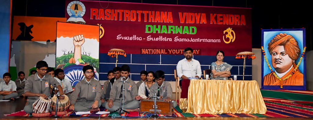 Dharwad, Jan. 12: “The reason why India is growing globally today is because of the ideals of Swami Vivekananda. Swami Vivekananda considered the entire country as a home and set out to do good for the world through that home. We all need to adopt Vivekananda’s ideals and move towards the goal of taking the nation to the highest glory by making every citizen of the country live a self-reliant life,” said thinker Srishaila Yadahalli. He spoke as the spokesperson for the National Youth Day celebration program held herein Rashtrotthana Vidya Kendra – Dharwad, Neeralkatti. The ‘Viveka Chintana’ program had been organized in the school for the last three days. The students sang the Chagi song.