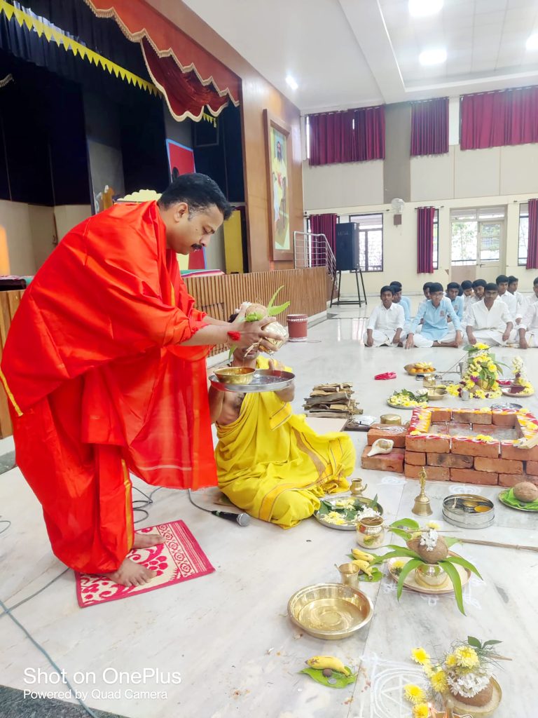 Dharwad, Jan. 23: Saraswati Homa was organized on the occasion of Vasant Panchami herein Rashtrotthana Vidya Kendra – Dharwad, Neeralkatti. Saraswati Homa was conducted under the leadership of Sri Harsha Bhat and Sri Ramachandra Bhat. School Principal Dr. Anita Rai, Administrators Dr. Srikanth K.S, Sri Ranganath Kulkarni, teaching and non-teaching staff wished the children good luck for the upcoming exams and blessed them.