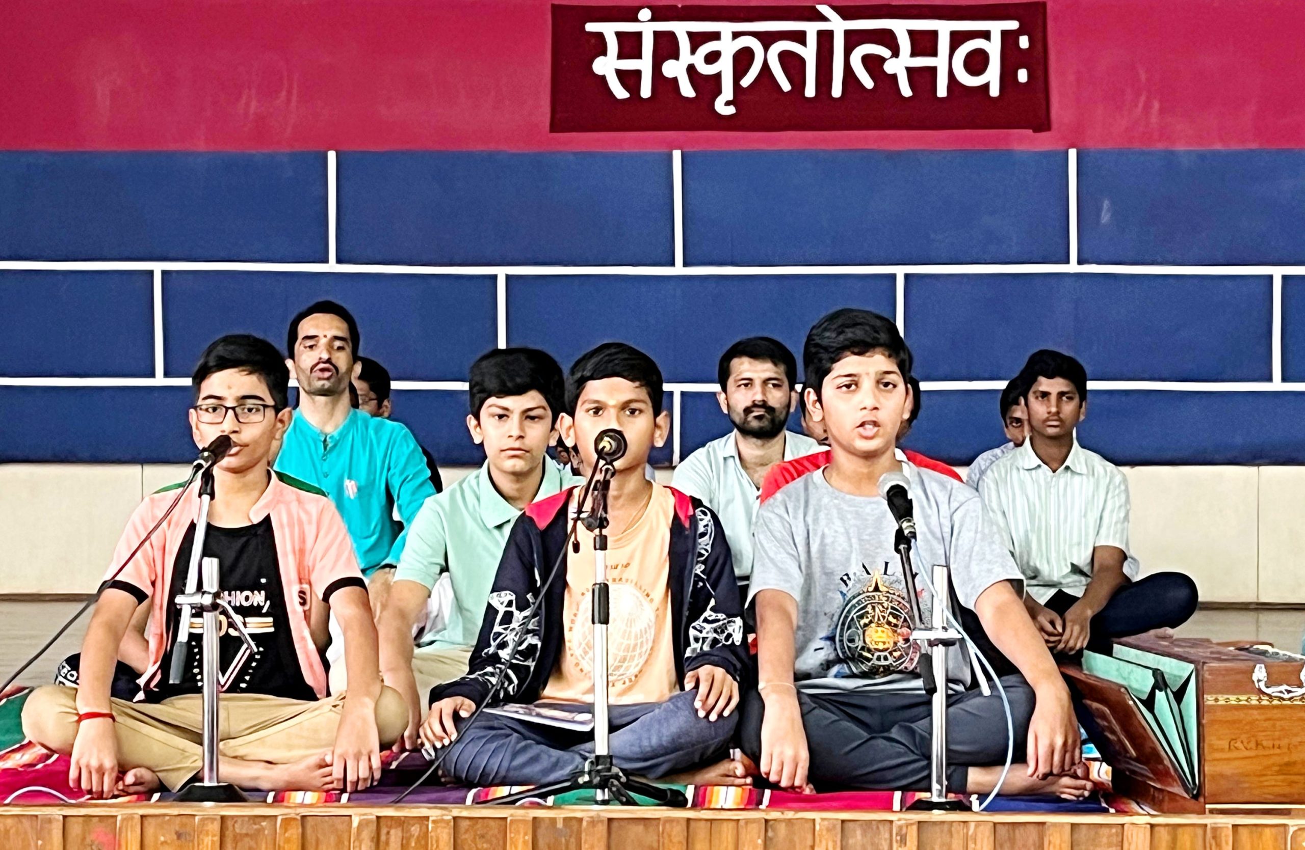Day 4: On the fourth day of Sanskrit Week, students recited the 9th chapter of Bhagavad Gita and Parvathareddi brothers Arjuna and Amogha, who have memorized 18 chapters of Bhagavad Gita, recited the shlokas asked by the students and teachers.